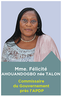 La loi n° 2017-20 du 20 avril 2018 portant code du numérique en République du Bénin (Livre 5ième relatif à la protection des données à caractère personnel et de la vie privée) en son article 465, dispose qu’« un Commissaire du Gouvernement, désigné par le Président de la République, siège auprès de l’ APDP… ».
