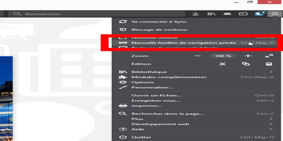 Lorsque vous utilisez ce mode, le navigateur ne conserve pas l’historique navigation, les recherches, les cookies et les fichiers temporaires.